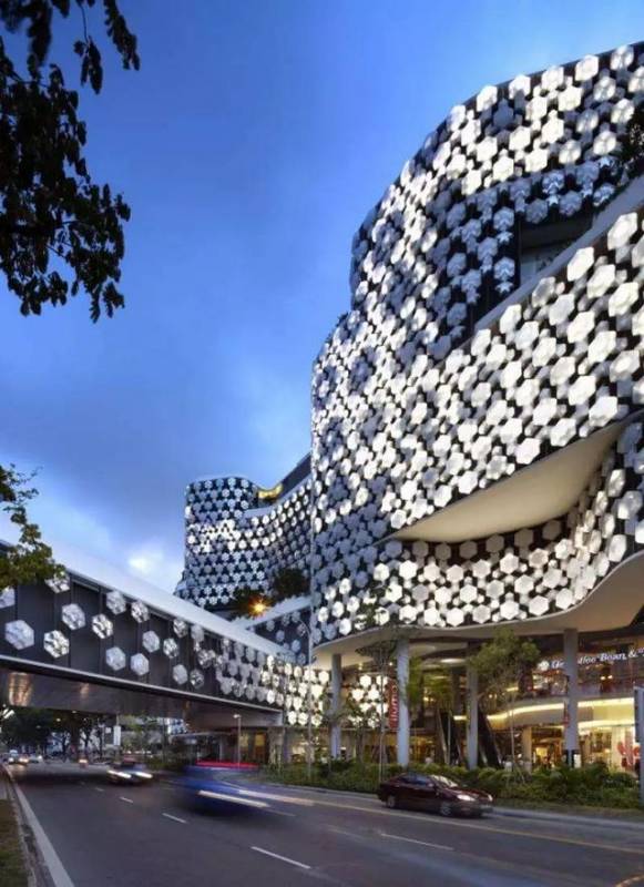 桥酱认为该项目应该是新加坡最具文化特色的商业建筑体了。从外表上看很难定义它的形状,像是由不同几何形状剪切拼接而成,极具抽象艺术的美感。