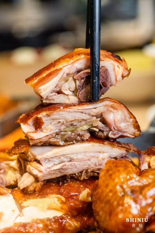 烧鸡一律选择2斤6两左右的黄油鸡,用沙姜和盐给它做柔情马杀鸡,并舒舒服服躺上8小时,让它去腥入味儿。