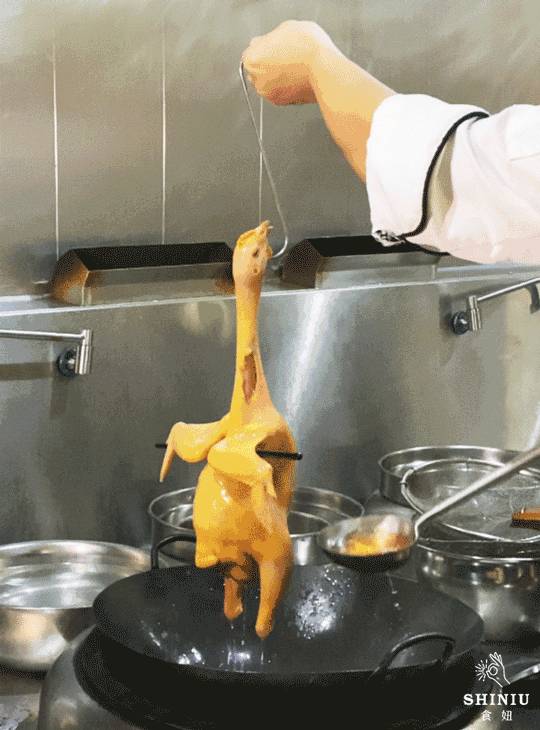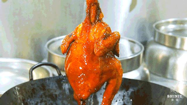 最最煎熬的,就是高温烤制,每分每刻都是恶魔试炼。最后,还要浑身泼上热油,滋啦啦烫出一层脆皮。