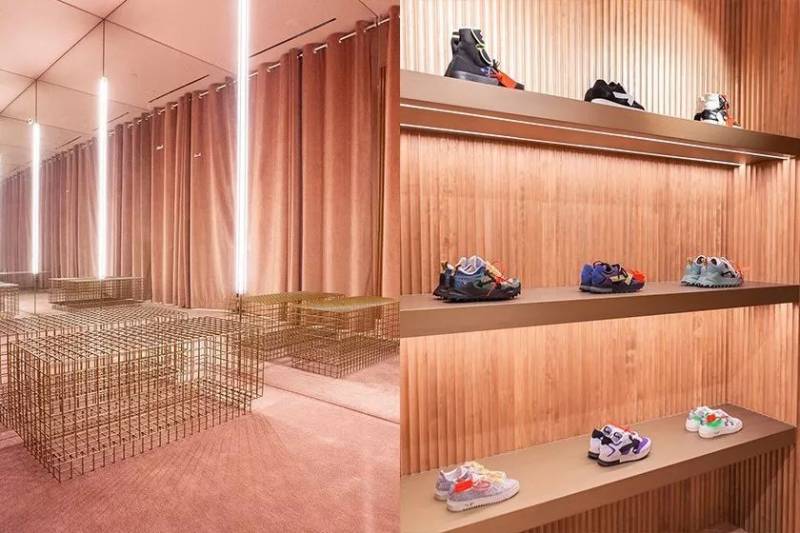 Off-White 新加坡女装旗舰店开业,相信各位潮人又多了一处网红打卡圣地!硬核美潮 Off-White 门店一向以简约的纯白格调为主,而这这家 Off-White 专卖店则打造了一处少女心爆棚的香槟粉空间。从有 Off-White 标志的大门,到粉色调的大理石地面,再到店内粉色系的地毯和金铜色的衣架和椅子,处处展现著品牌为女生打造的专属心意。
