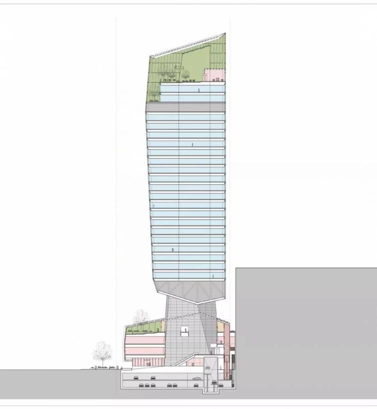 KPF设计总监bruce fisher解释说:“这个项目的核心是在一个不规则的场地上,通过环境检查来规划甲级办公空间。”然而,这些条件最终推动了设计的成功,同时也利用了罗宾逊路广阔的视觉走廊。这座充满活力的塔楼将自己从禁欲主义建筑立面的峡谷中解放出来,在独特的有利位置整合绿色空间,并最终在一个精品多功能项目旁边培育混合的公共空间领域。