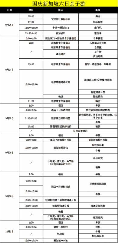 在旅行前当然要做一些小攻略啦~看了很多游记,各个网站上的都搜罗了一遍,然后根据自己的一些生活作息(因为毕竟还是要按照小朋友的一些生活习惯),然后自己出了一份这样的时间表。