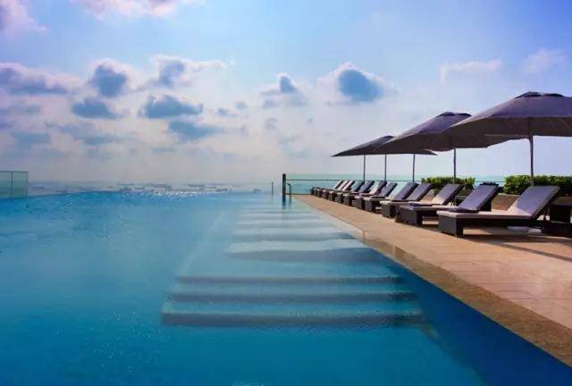 装修风格极为现代时尚,楼顶的泳池,视线很好。