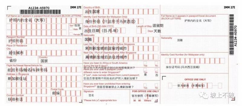 在过海关之前需要先填写入境表格(简称白卡),这张卡非常重要,入境新加坡后应妥善保管,离境时仍需要用到白卡。