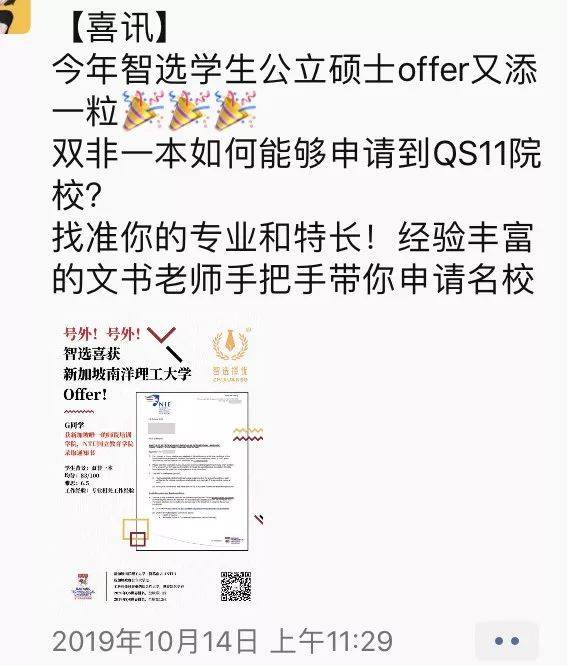 智选择优学生收到NUS录取通知书