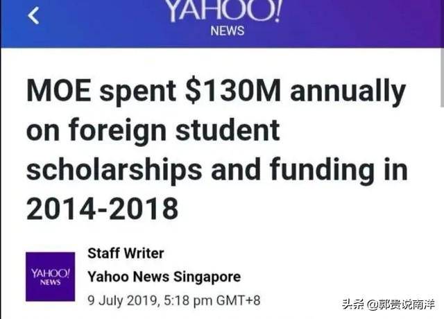 “新加坡教育部每年颁发1亿3千万新币奖学金给外国学生到新加坡升学”