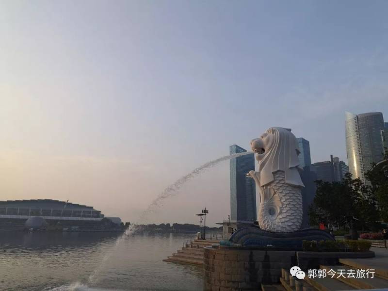 到新加坡的第一天,第一站,鱼尾狮公园。到达鱼尾狮公园的时候才早上7点钟,恰好遇到日出,将鱼尾狮公园对面的金沙酒店,金沙艺术中心以及摩天轮衬托出了耀眼的橙金色。已经有不少游客在围着鱼尾狮拍照了,我们也迅速行动加入打卡的一员。不过由于到得太早,鱼尾狮竟然还没有喷水,时间大概到了7点半的样子,随着人群的一声惊呼,鱼尾狮喷水啦~其实鱼尾狮的由来还有一个美丽的传说,公元14世纪时王子在前往马六甲途中来到了新加坡。他一登陆就看到一只神奇的野兽,随从告诉他那是一只狮子。他于是为此岛取名“新加坡”,在梵文中即“狮城”的意思,而鱼尾象征当年飘洋过海十分美丽。这也确实是一个很美丽的国家呢~