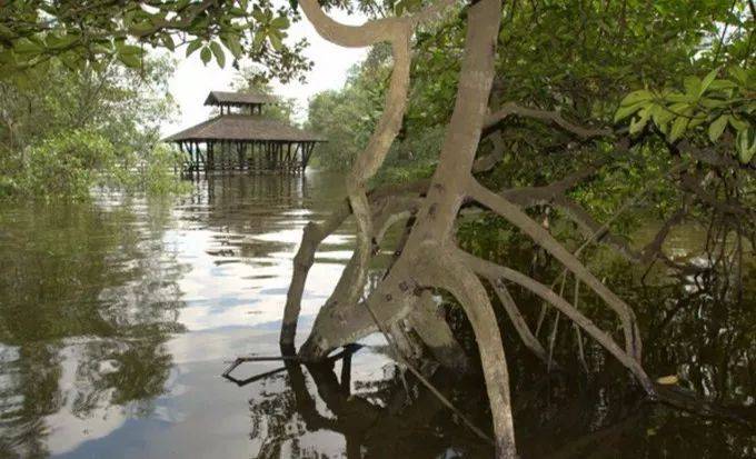 外观一片绿色,沿着锡邦河而上,您可以观赏到红树林中丰富的生态景象,各种鲜艳夺目的花朵及果实点缀著碧绿的红树林树。