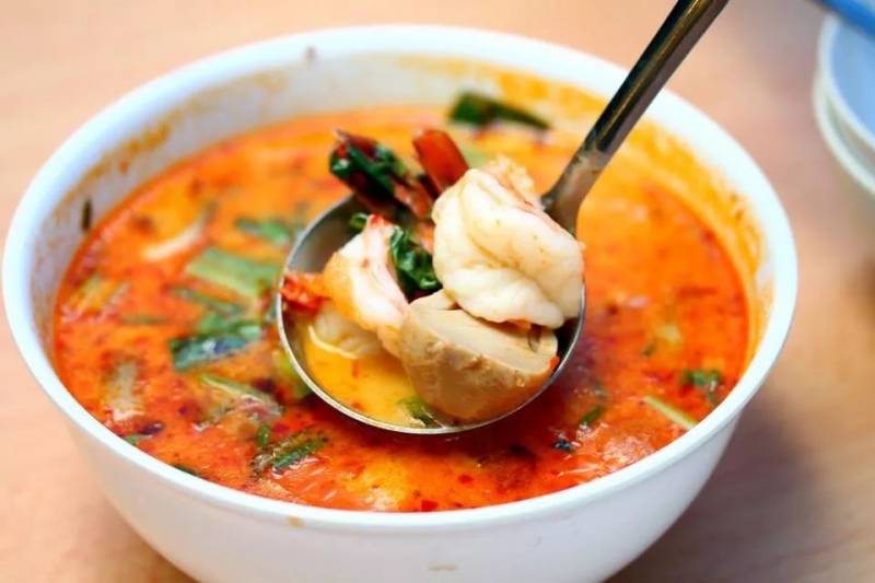 soi thai,每道菜都不错,pad thai,冬阴功汤,咖喱等等。黄咖喱海鲜使用特制的黄咖喱酱制成,风味十足。多汁的大虾和洋葱充分吸收汤汁的鲜,是很美味的下饭菜。