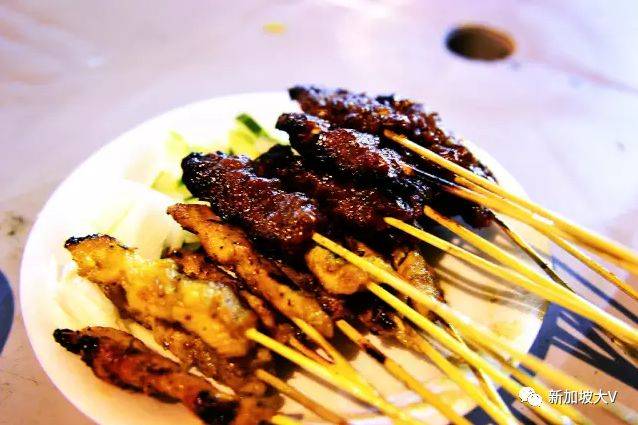 沙爹(烤鸡肉牛肉猪肉或羊肉串),是新加坡有名的美食。炭火烤制的肉串,配上洋葱,黄瓜和甜丝丝的酱料,吃着到很新鲜。平常习惯了吃咸辣布满孜然肉串,可以尝试一下这种甜丝丝的肉串。