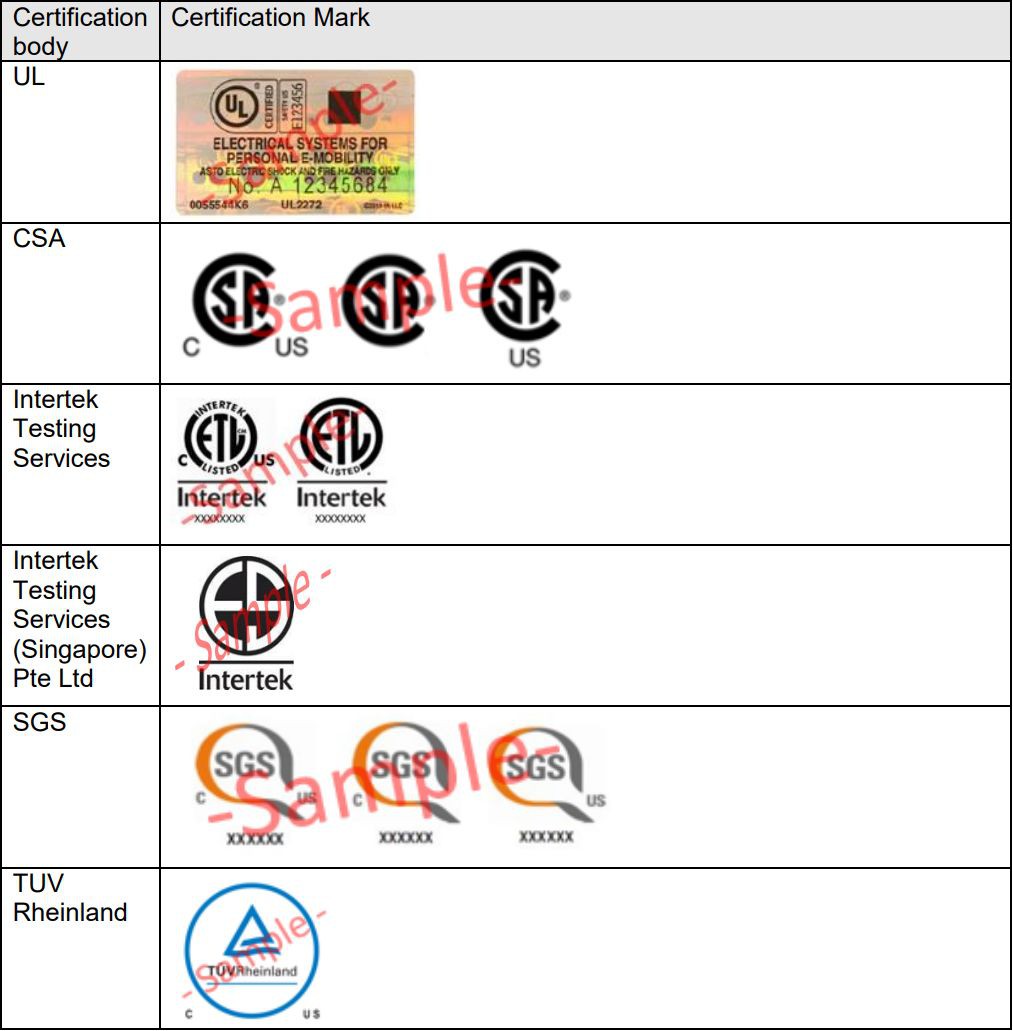 4)具有UL2272认证:电动滑板车带有如下的标志