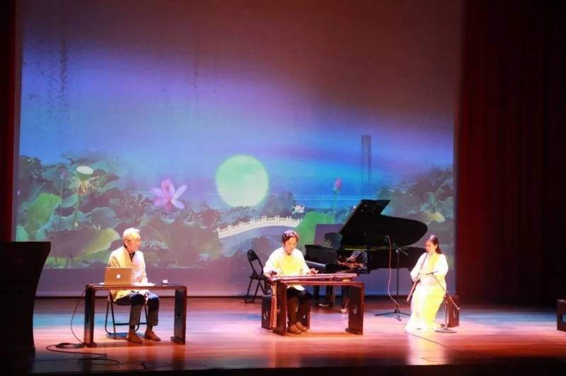 本次古琴导赏音乐会内容形式丰富多样,既包含经典曲目,又涵盖创新改编曲目,通过导赏音乐会,将中国民族乐器古琴、箫与西洋乐器钢琴联合演绎,展现古琴文化的悠久历史及艺术魅力,彰显中西方文化交融背景下如何让古琴迸发创新的活力。多位青年艺术家不仅演奏了《梅花三弄》、《流水》、《渔樵问答》等经典传统古琴曲目,还有钢琴独奏传统古琴曲改编的钢琴曲《酒狂》。伴随着当地观众熟悉的旋律,在优美动听的琴箫合奏曲目《但愿人长久》结束后,本次古琴导赏音乐会圆满落幕。