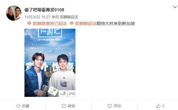 (11月11日),网友在微博上艾特新加坡眼,分享在岛上偶遇明星的快乐!