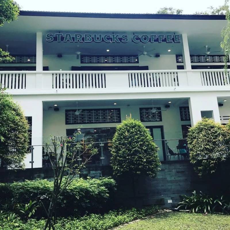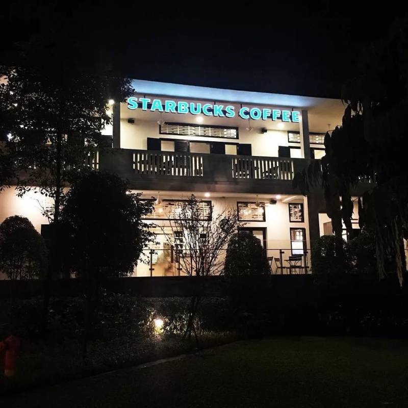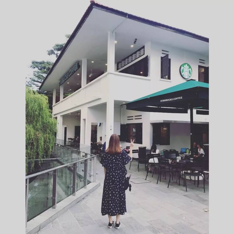 吃饱喝足后,这里有一家星爸爸也是不得不提。星爸爸一向是以融入周边环境著称的,这家店也是一样。跟公园里的一众小别墅选用了一样的建筑风格,白色为主色调的墙壁,搭配馥郁葱葱的植物们。相信只要坐在这里呆一会都会心旷神怡。