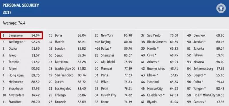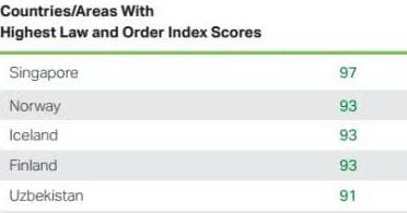 为啥说是蝉联?因为在2018年盖洛普发布的全法律与秩序调查里,新加坡就以97分的高分拿下“安全国度”的冠军之位,比第二名的挪威要高出4分。