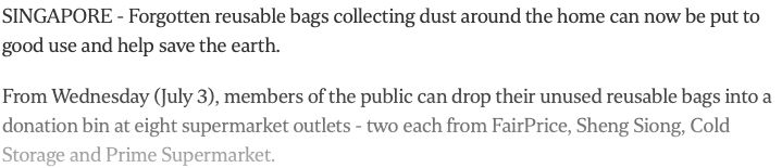 新加坡8个超市商店推出可重复使用袋的捐款箱