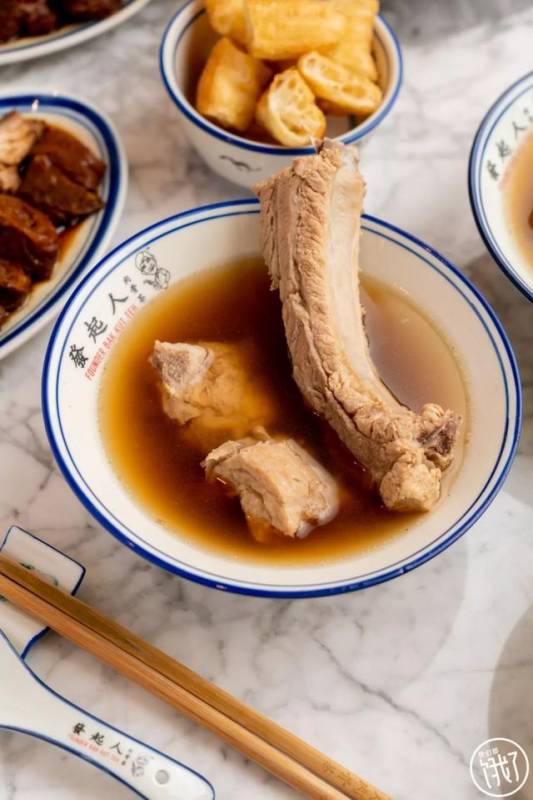 发起人肉骨茶的后厨杵著两个深不可测的大桶,一个装塞满蒜头和大骨的原汤,另一个是较为清澈的骨汤,两种汤头复合交融,才能诞生看着油滋滋,实则纯正又富有高级香气的汤头。