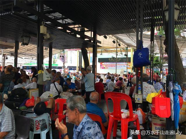 旁边的牛车水广场聚集了很多老年人,他们有的下棋,有的聊天,座无虚席。看来新加坡的老年人挺多啊,看相貌在这里聚集的绝大部分是华人。