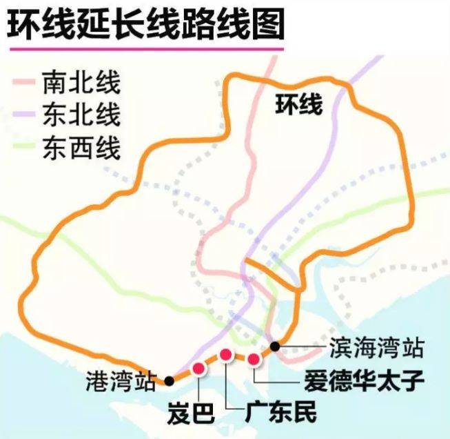 一条约长四公里的延长线,从滨海湾衔接到港湾地铁站,让环线真正变成一个闭环,延长线上也会有3个新的地铁站,分别是岌巴(Keppel)、广东民(Cantonment)和爱德华太子(Prince Edward)站,环线为此将添购多11列新列车。