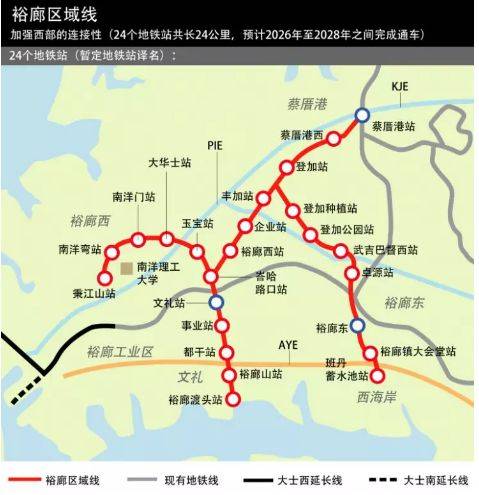地铁也会直接开到南洋理工大学NTU的校门前,并衔接裕廊工业区和新发展的裕廊创新区(Jurong Innovation District)。