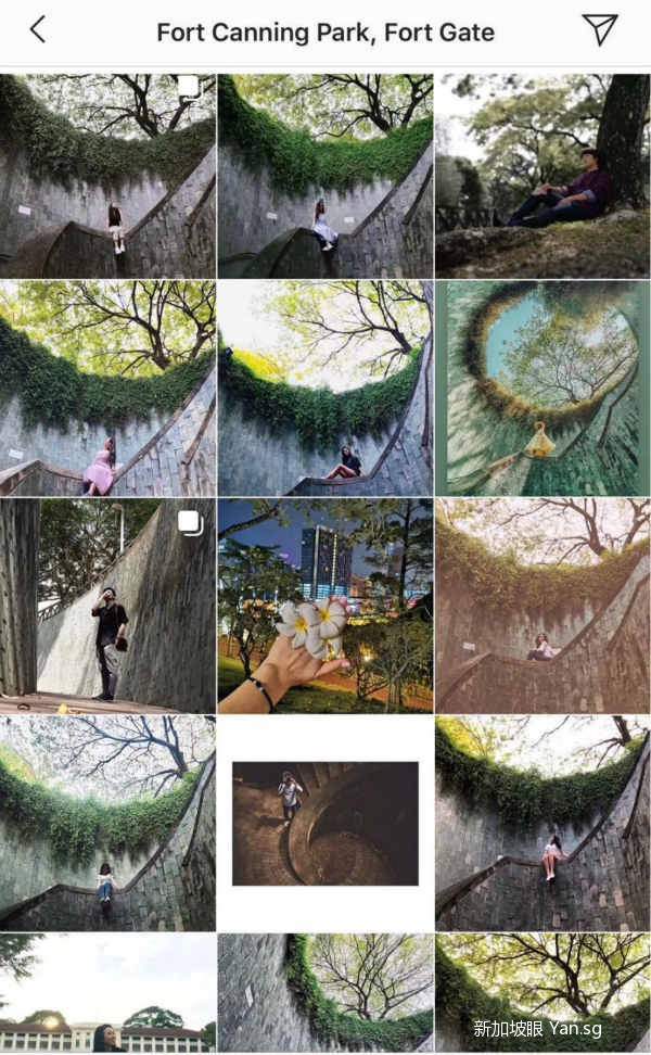 在网上非常火,社交平台Instagram上随便一搜“Fort Canning Park, Fort Gate” ,就会出现无数同类视角的图片。