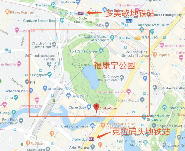 福康宁公园同时靠近多美歌和克拉码头地铁站,但要去螺旋楼梯,最快捷的途径就是从多美歌地铁站出发。