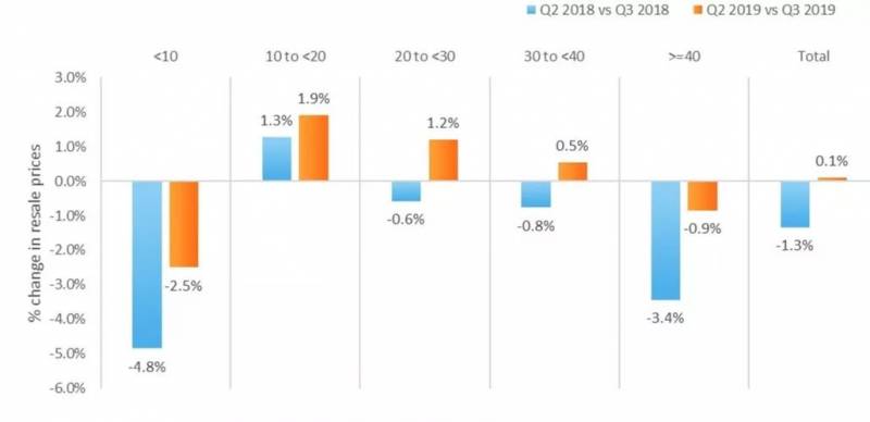 报告中指出,较慢的价格下跌似乎表明,最近几个月人民对老房子的信心会有所改善。对于较老的组屋,2019年第三季度的价格环比下降0.9%,而前一年的幅度为3.4%。
