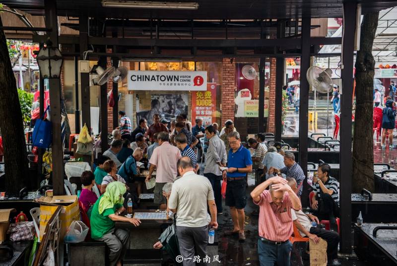 牛车水大厦是一座综合型市场,批发零售各种服饰、蔬菜、熟食、饮料、果汁等。牛车水大厦门口的小广场是中老年人的休闲天地,下棋、打牌、品工夫茶,不同的人在做着不同的事情,这种高度市井的画面在现代化的新加坡并不多见。