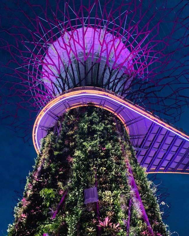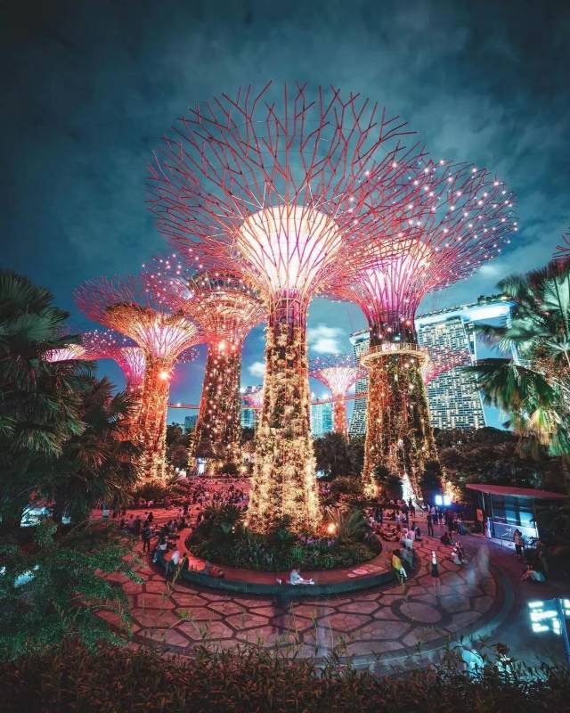 来到新加坡,最不容错过的夜间精彩表演之一,就是滨海湾花园的灯光秀了。滨海南花园正中央的几棵巨型擎天大树,在天色慢慢暗下来之后,会随着天空的颜色渐渐改变,直到夜幕完全降临,擎天大树将被完全点亮,树上的灯光将不停变化,在美妙的音乐中为你演绎一场狂想曲灯光秀!一闪一闪的鲜艳灯光配上音效,仿佛来到了精灵的世界!