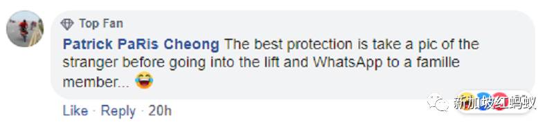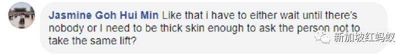 “哈哈,如果你的组屋只有一架电梯,除非你认识整栋楼的人,否则一定会在电梯遇到陌生人啊。除非你在别人睡觉的时候出门上班和回家,不然也一定会遇到陌生人。”