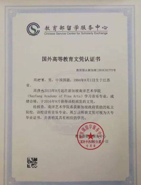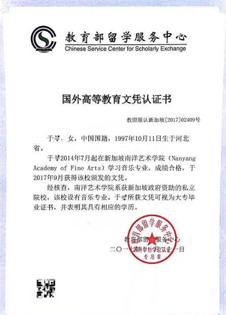 NAFA文凭受中国教育部认可,回国可做公证,可找工作和报考公务员。