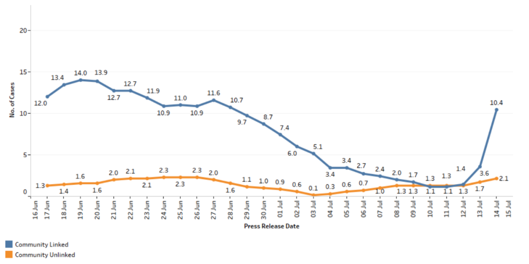 图源:jones day新增病例有小学生、摊贩和足球运动员7月14日,新加坡新增56起本土新冠病例(其中包含6名无关联病例)、4名输入病例和三个感染群。