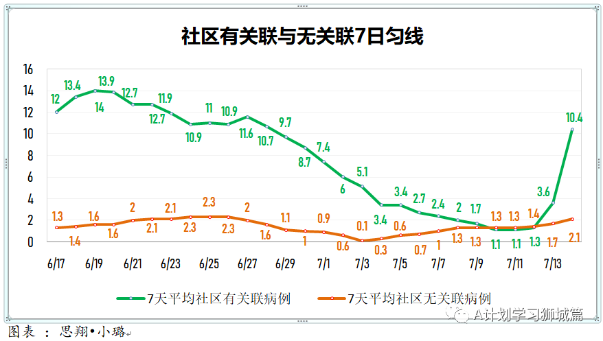过去七天,每天平均新增的无关联本土病例为2.1起,有关联的本土病例则为10.4起。