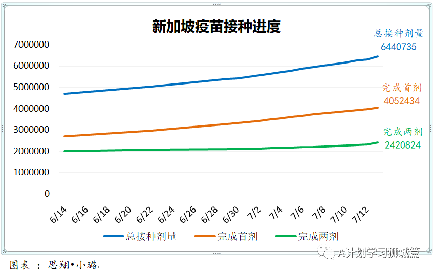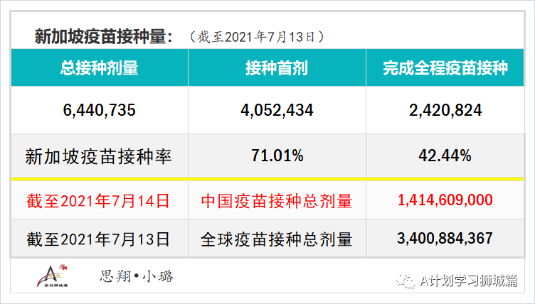 截至7月13日,新加坡已经通过全国疫苗接种计划施打644万735剂疫苗。405万2434人已经接种了一剂疫苗,其中242万824人已完成两剂疫苗接种。