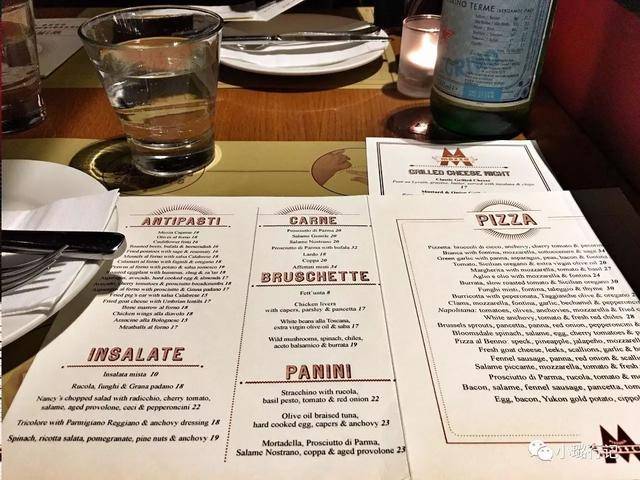 走到店门会发现为何有两个Mozza?原来同在Mozza这个品牌下,有两个不同风格和不同主打菜的餐厅:Osteria Mozza是formal的意餐厅,Pizzeria Mozza是casual的披萨餐厅。走进大门,前台服务员便会问你想吃哪家,意餐往左,披萨往右,而此行我们选择了右边亲民的Pizzerial。