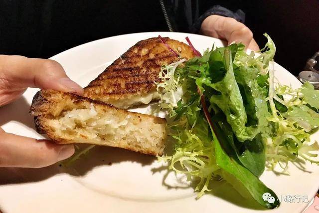 去餐厅的当天是周一,正好逢周一是Grilled Cheese Night!正中超爱吃芝士的偶像下怀,点了Classic Grilled Cheese,就是在面包中夹入浓厚的mozzarella芝士烤制而成,一上来就要马上趁热吃,一口咬下去,面包外面的脆香和内里被芝士溶化浸透后的松软,简直美味!