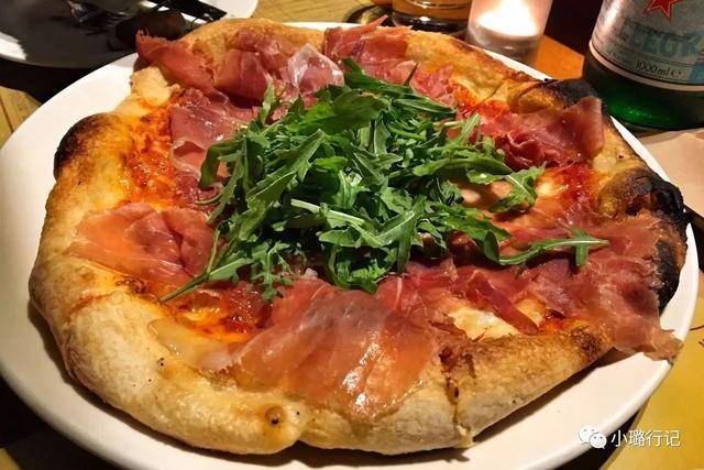 选择Pizzeria不止是因为亲民,最重要的是他家有一款独特的Pizza —— 帕尔玛生火腿披萨Prosciutto Prama Pizza,味道简直堪称完美,我俩一致认为这绝对是迄今为止吃过的最好吃的披萨,没有之一!本来就超爱吃Prama生火腿的我们,第一次尝到了被烤的香气四溢的薄饼卷起那融合了芝士和番茄的生火腿,再配以独特香味的绿菜的吃法,一口下去,真的是好吃到没朋友了。。。。