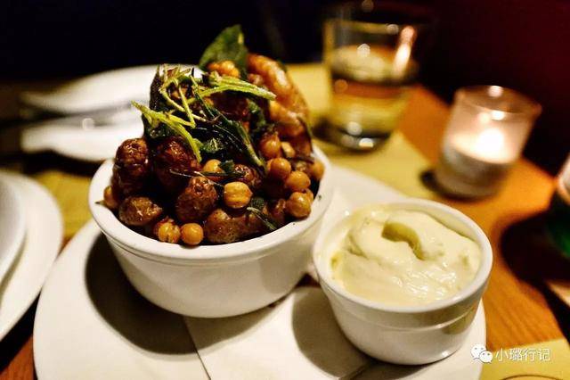 还值得推荐的是他家的两款前菜:迷迭香烤土豆(Fried potatoes with sage & rosemary),一颗颗小长条形土豆烤香后加上炸脆了的迷迭香叶子,吃的时候粘著奶酪酱,让我这个土豆控欲罢不能!