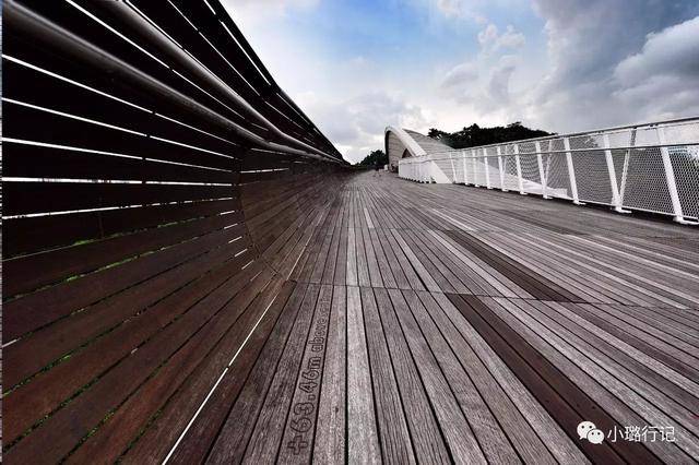 对于许多人来说,这里很冷门,就桥本身而言,全长不过270多米,从一头到另一头也不过5、6分钟就可以走完,因此真不是所有人都会觉得值得来,可我们就喜欢这样小众的地方。在逛完海洋馆,接近黄昏时来到此地,微风起,天气也没有那么热了,站在这座新加坡最高的木制人行天桥上,感觉犹如站在波浪里,俯瞰著这座绿油油的海港花园城市,又或是躺在波浪般弧形桥身上,发个呆,那种感觉真舒服。