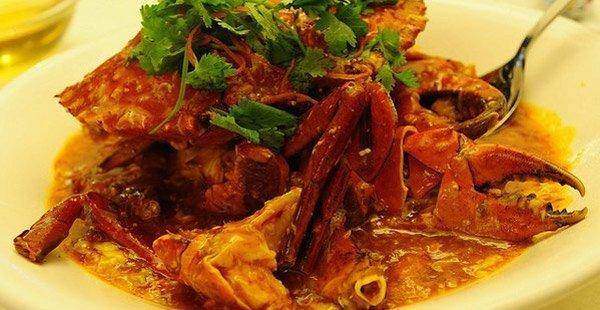 辣椒螃蟹是到了新加坡一定要去吃的美食,螃蟹是斯里兰卡大螃蟹,吃到最大的要2.5 公斤左右。说是辣椒,其实除了辣椒之外,还有东南亚才有的酸梅汁调料,调进蛋花,调出一大盘有料有汁的辣椒螃蟹。在大块朵颐之后,用个小馒头(有清蒸和油炸两种)蘸着汤汁再来几口,让这盘辣椒螃蟹全部下肚,绝无浪费!