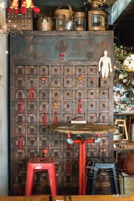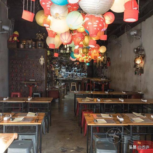 老板最大限度地保留了老建筑的结构,老式百子柜、中药秤和穴位人偶提醒着人们这里曾经是间老式医院,而特色的中式日历、复古灯笼、老旧煤气灯......则静悄悄的展示著早年华人的生活痕迹。