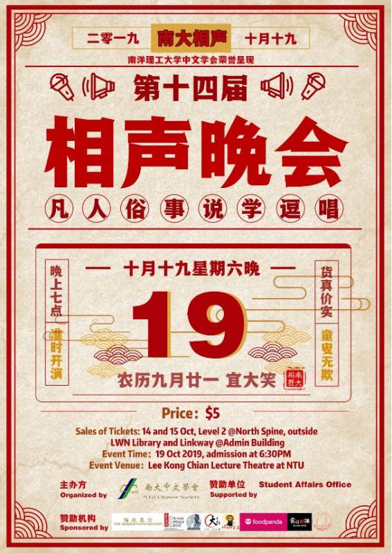 距离南洋理工大学相声晚会即将开始!十月十九日晚七点,精彩绝伦的相声表演就将在南大LKC讲堂开演。先来小窥彩排花絮——