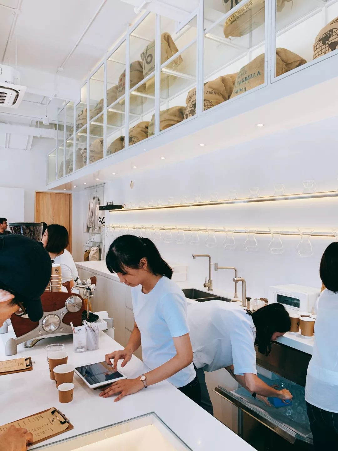 店内的装潢以极简主义白色基调为主,干净,简单大方,与棕色纸杯互相呼应,感觉来这里不拍照都对不起设计师!
