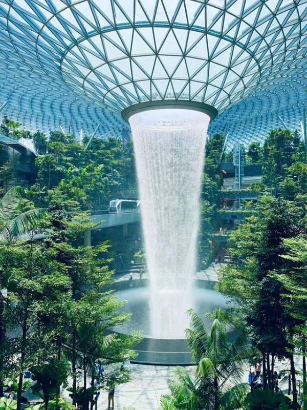 星耀樟宜是独立的一栋,由著名室内设计师萨夫迪(Moshe Safdie)设计,跟金沙是同一位设计师。最著名的雨旋涡就在这里。