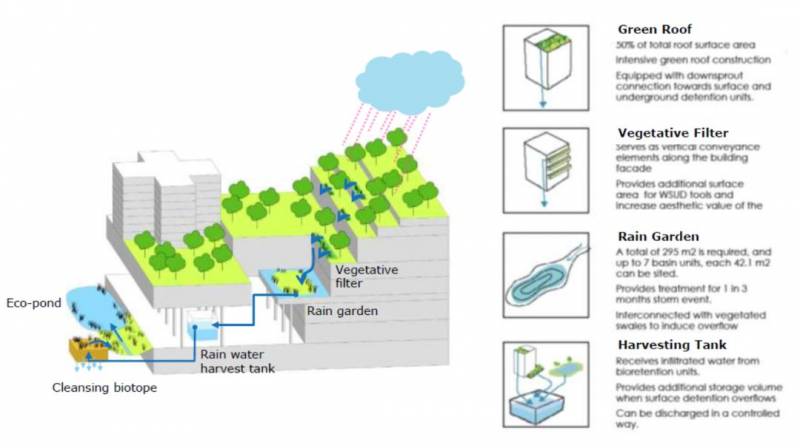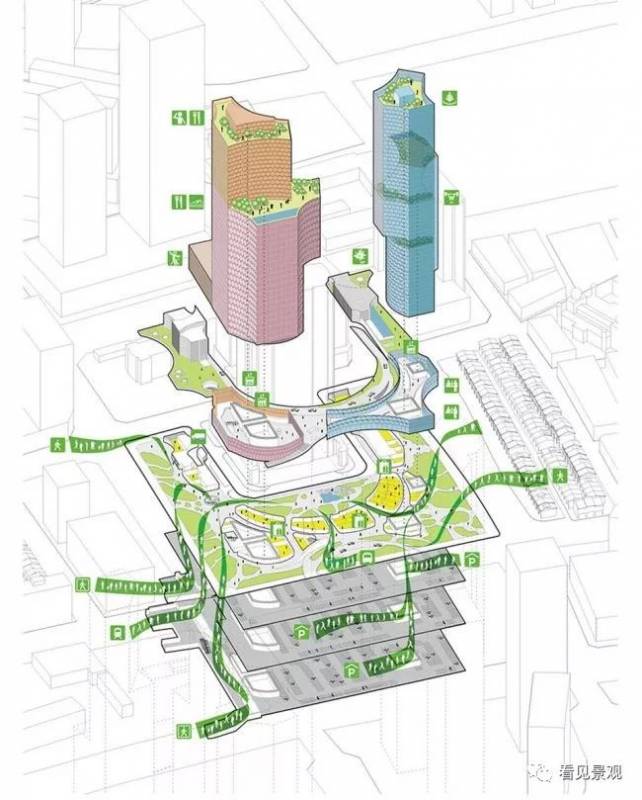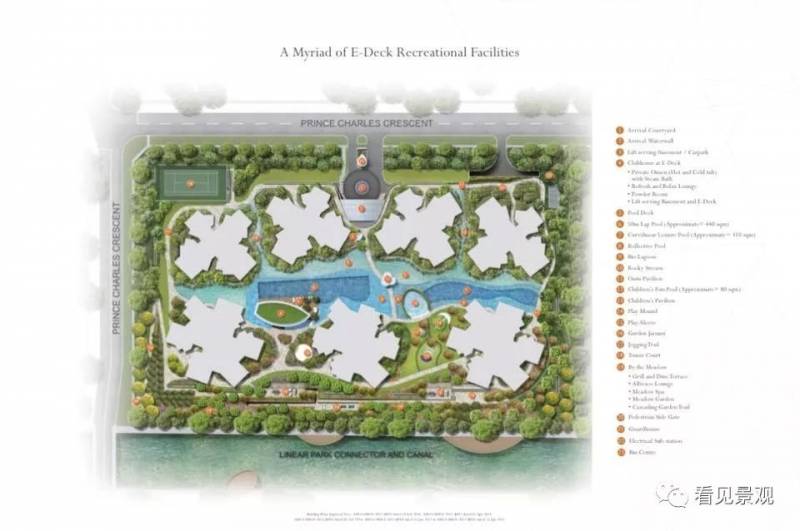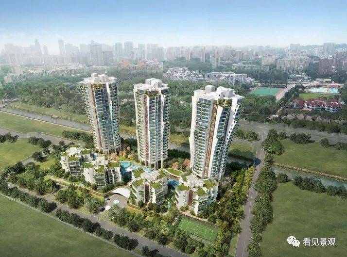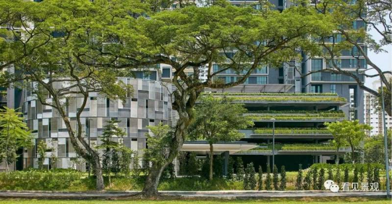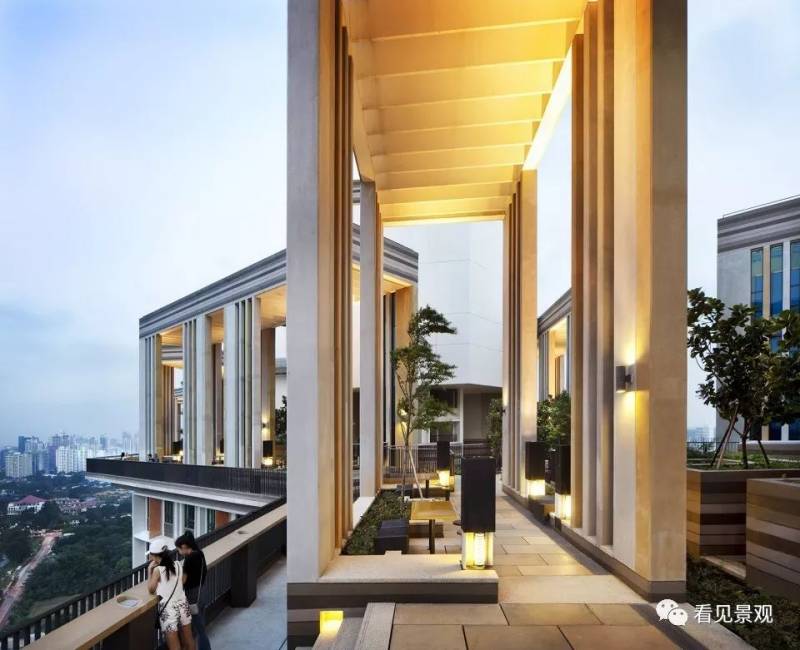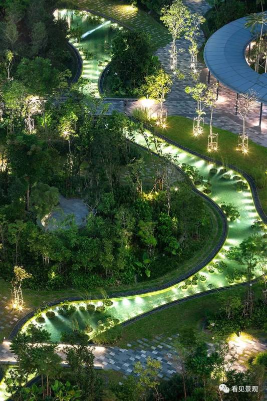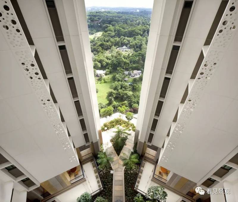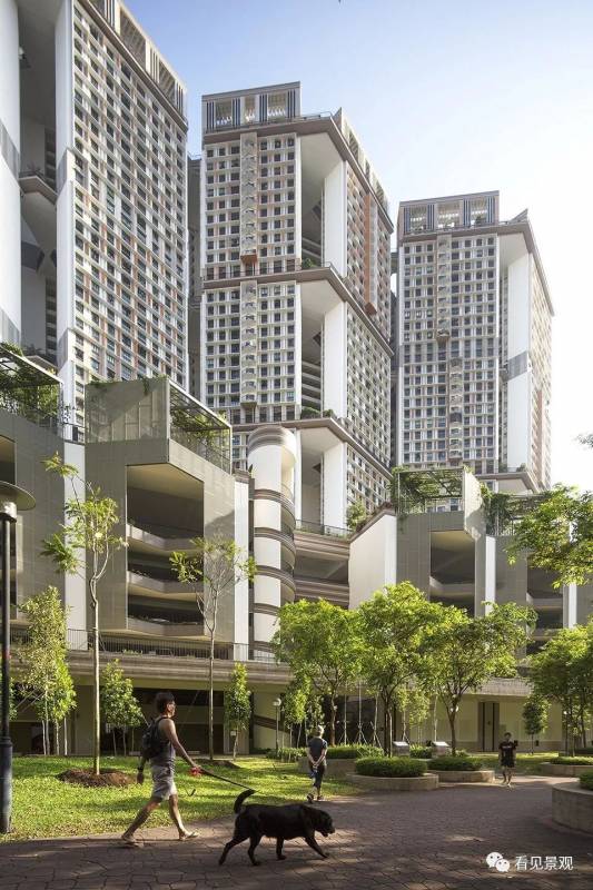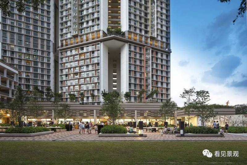 海军部社区是一个集多功能于一体的旗舰式“垂直村庄”项目,它将一个占地2.2英亩的紧凑场地变成一个充满活力的社区中心,综合性的社区环境和生态空间使老龄化的人口能够更为积极地生活。在当今高度密集的城市环境中,景观空间由绿色植物和蓝色的基础设施层叠在一起构成,它将整个海军部社区的居民与历史悠久的“Kampung”村庄精神紧密连接起来。项目中100%返还绿化率及1.2英亩的软景观设计为整个社区带来了生机勃勃的生态感官体验,生物友好型景观策略在此项目中被体现的淋漓尽致。同时,社区中水资源的合理利用也积极响应了水敏感城市设计理念。未来这个独特的空间将作为一个模范式社区福祉,培养更多的年轻人的同时保证老龄化人口可以拥有更为优雅的生活方式。