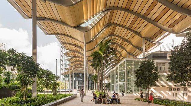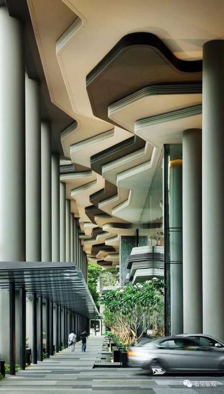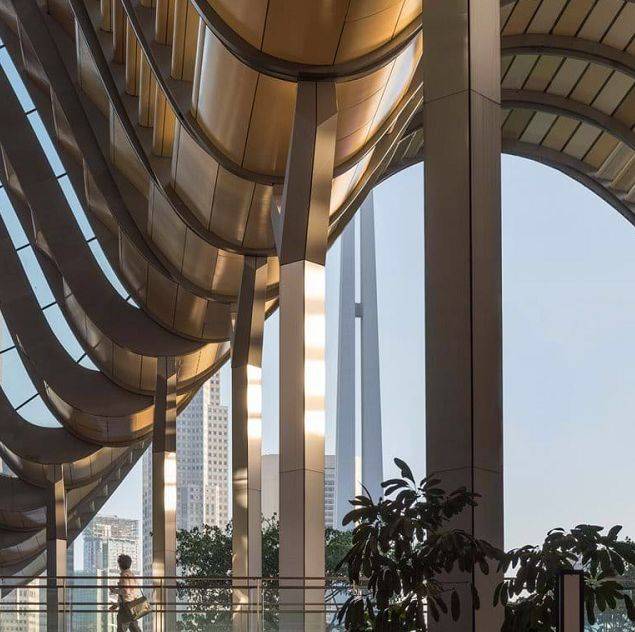 风华南岸位于新加坡市中心的一个城市街区,将新建筑与历史建筑的修复相融合。是一个综合体项目,将咖啡馆、商店、餐饮、酒店、公寓结合在一起。宽阔的景观步道(一条绿色脊柱)穿过场地,由一个波浪一般动感起伏的大顶棚保护,从而遮挡了热带地区强烈的阳光,产生良好的通风隔热效果。