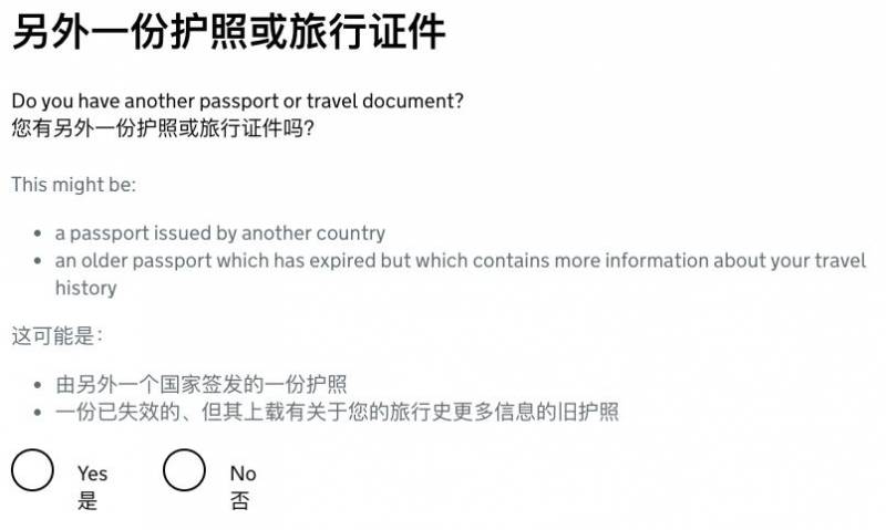 :如果您有别的国家的护照,或者更换过护照且旧护照上有您的旅行记录的话,需要您提供另外一个护照上的信息
