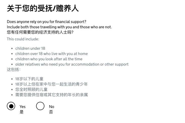 20.填写您的赡养人或者受抚人的详细资料,如果您有小孩或者老人需要赡养,请选“是”,没有就选“否”。