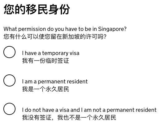 11.说明您在新加坡的准证:除了PR身份以外,其他的签证都算临时签证。