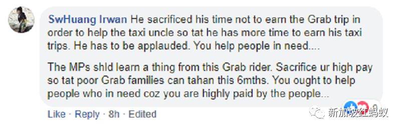 送餐员的时间争分夺秒,但这位小哥愿意牺牲掉可以多送几趟外卖的时间和赚钱机会,让德士司机能继续去载客赚钱,值得表扬。